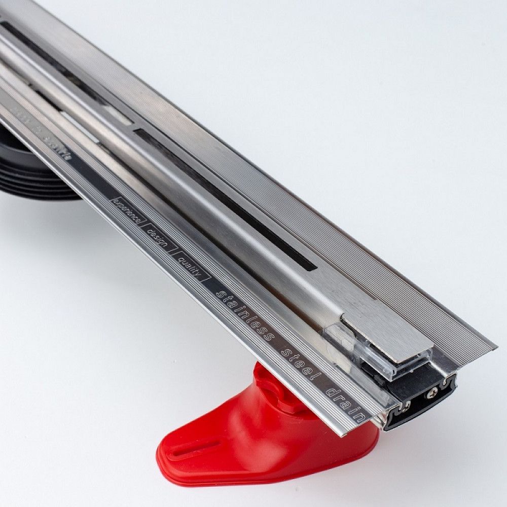 Решетка и декоративные заглушки, нержавеющая сталь AISI 304Комплект регулировки решетки по высоте от 8 до 25 ммСетка для волос, пластикКомплект гидроизоляцииЖелоб водосток, нержавеющая сталь AISI 304Монтажная заглушка, пенопластРегулируемые по высоте ножки, пластикСамопромывной S-образный сифон PPГоризонтальный выпуск D50 H60, пропускная способность 42л/мин, монтаж 360°Монтажный ключ, пластик