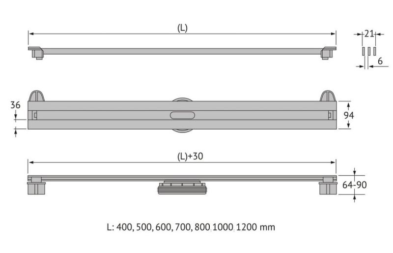 Решетка и декоративные заглушки, нержавеющая сталь AISI 304Комплект регулировки решетки по высоте от 8 до 30ммСетка для волос, пластикКомплект гидроизоляцииЖелоб водосток, нержавеющая сталь AISI 304Монтажная заглушка, пенопластРегулируемые по высоте ножки, пластикСамопромывной S-образный сифон PPВертикальный выпуск, пропускная способность 42л/мин, монтаж 360°Монтажный ключ, пластик