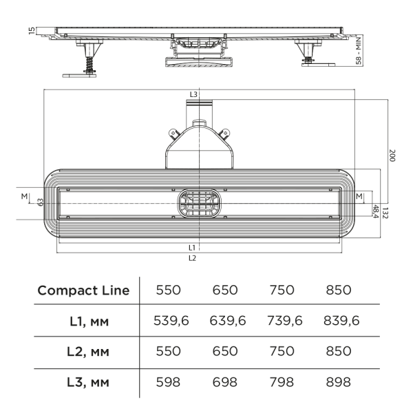 СЕРИЯ COMPACT LINE Линейный  трап COMPACT LINE — продукт европейского производства, воплощающий передовые инженерные решения и безупречный дизайн. Модель оснащена S-образным сифоном с гидрозатвором и сухим затвором, обеспечивающим надежную защиту от засоров и неприятных запахов. Инновационная конструкция с ультранизким профилем и выверенным углом слива создает эффект самоочищения, минимизируя необходимость обслуживания. Ключевые особенности: ·         Европейское качество: Произведено в Сербии под брендом BETTOSERB в соответствии со строгими стандартами. ·         Гибкость дизайна: Инженерное решение позволяет использовать трап как с решеткой из нержавеющей стали, так и с декоративным вкладышем из дизайнерских материалов для бесшовной интеграции в любой интерьер. ·         Современная упаковка: Прочная блистерная упаковка из PET-пластика гарантирует сохранность товара при транспортировке и привлекательный вид на витрине без необходимости дополнительных стендов. ·         Универсальность: Подключение D50 и комбинированный затвор для широкой сферы применения. ·         Практичность: Гразеулавливающая сеточка и сифон с покрытием Self-Cleaning для легкого ухода. ·         Адаптивность: Регулируемые опоры (550/650/750/850 мм) под любые условия монтажа и вращающаяся база 360° ·         Прочность: Конструкция выдерживает нагрузку до 300 кг. Технические параметры: ·         Пропускная способность: o    Гидрозатвор: до 100 л/мин o    Сухой затвор: до 55 л/мин ·         Монтажная высота: 58 мм (минимальная) ·         Корпус из ABS пластика + нержавеющая сталь Уникальные преимущества:? Двойной дизайн (2 в 1) для гармонизации с интерьером? Самоочищающаяся геометрия слива? Два варианта верхнего покрытия (нержавеющая сталь/плитка)? Полная комплектация (включая монтажный ключ и гидроизоляцию) ? Готовое решение "под ключ" ·         Полная комплектация в одном наборе ·         Не требует докупки дополнительных элементов ·         Включает все необходимое для монтажа: от гидроизоляционной ленты до специального ключа Идеальное решение для проектов, где важны: ? Безупречная инженерия? Гибкость дизайнерских решений ? Европейская надежность? Простота интеграции в премиальные интерьеры   Сочетание функциональности, эстетики и инновационных технологий для ванных комнат и кухонь высокого класса!