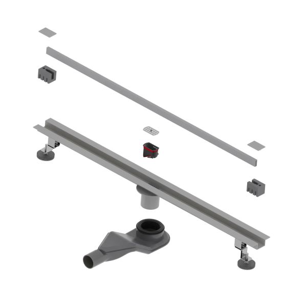 Месторасположение дренажной системы должно быть запланировано заблаговременно на этапе черновой отделки, чтобы сделать подводку канализационной трубы. Также должно быть предусмотрено заглубление в полу или в подиуме для скрытой части трапа. Высоту душевого линейного слива можно регулировать с помощью стальных опор в диапазоне 94-122 мм.Душевой лоток комплектуется переходником с диаметрами 40/50 мм для подключения к канализационной трубе. Для эффективного стока воды нужно предусмотреть уклон облицовочной плитки в сторону сливного жёлоба и небольшой уклон канализационной трубы от соединения с сифоном до входа в стену.На этапе монтажа обязательно до укладки облицовочной плитки уложите вокруг лотка гидроизоляционный материал, которым комплектуется душевой дренажный канал.Облицовочная плитка укладывается на вылеты лотка, что исключает неровной выкладки облицовочного материала и значительно облегчает монтаж сливного канала.