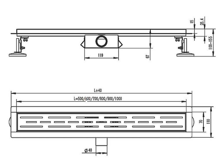 Трап изготовлен из высококачественной нержавеющей стали, в коллекции цвета трапа представлены в нескольких вариантах - графит и сатиновый. Линейный трап под кладку плитки для душа предназначен для отвода воды с пола или поддона под душем. Широкий диапазон регулировки по высоте позволяет устанавливать трап в новых ванных комнатах. Индивидуально регулируемые ножки обеспечивают беспроблемную установку, даже в тех случаях, когда Вы сталкиваетесь со значительными неровностями в различных частях монтажной поверхности. Трап обеспечивает свободный слив воды в канализационную систему, также собирая мусор, не давая ему засорять сливные каналы. Принцип работы сухого затвора: легкий поплавок диаметром больше сливного отверстия опускается и закрывает трубу в случае высыхания воды. В рабочем положении вода поднимает и удерживает поплавок на одном уровне и система работает, как один из вариантов гидрозатвора. Если трап не используется, то вода из затвора испаряется, а поплавок закрывает сливное отверстие. Выпуск: горизонтальный. Материал корпуса: нержавеющая сталь. Защита от запаха: сухой+гидрозатвор, , пропускная способность душевого комплекта 30 лит/мин.
