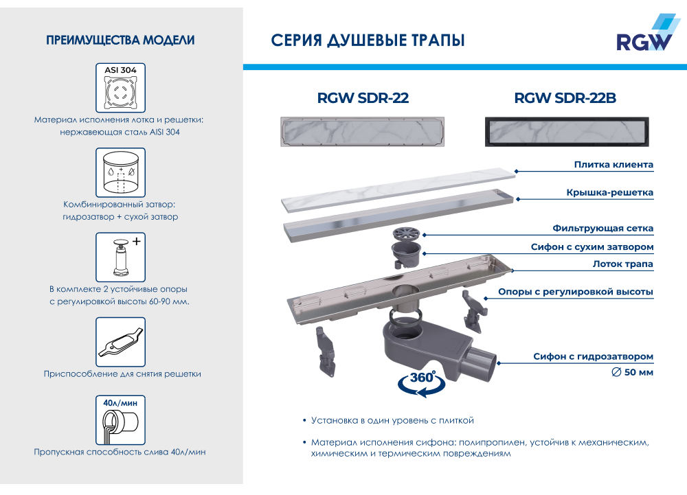 Душевой лоток RGW SDR-22 47212260-01 60см под плитку хром купить