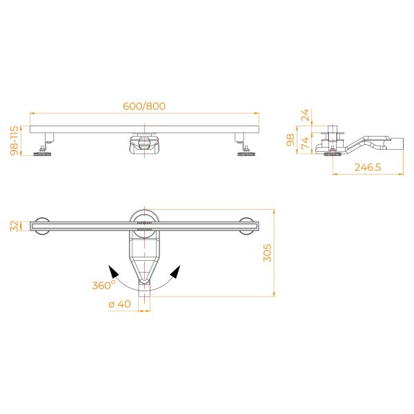 • Две усиленные опоры из нержавеющей стали с регулировкой высоты