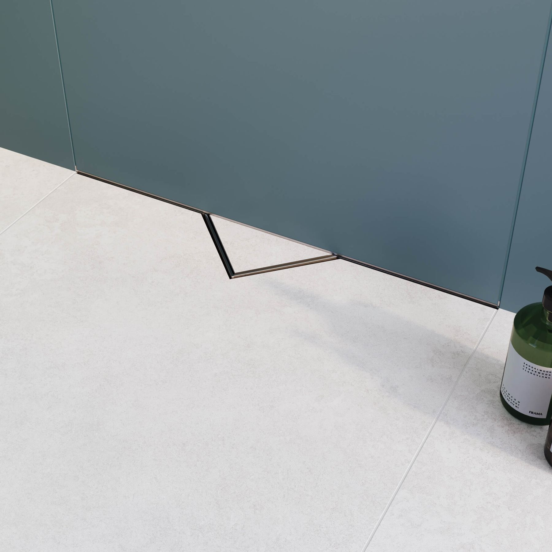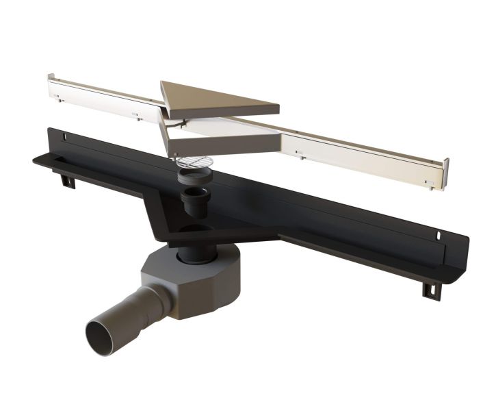 - Визуально скрытый дренаж с треугольной крышкой из нержавеющей стали, позволяющей вложить плитку и воплотить дизайн-концепцию в стиле "минимализм";