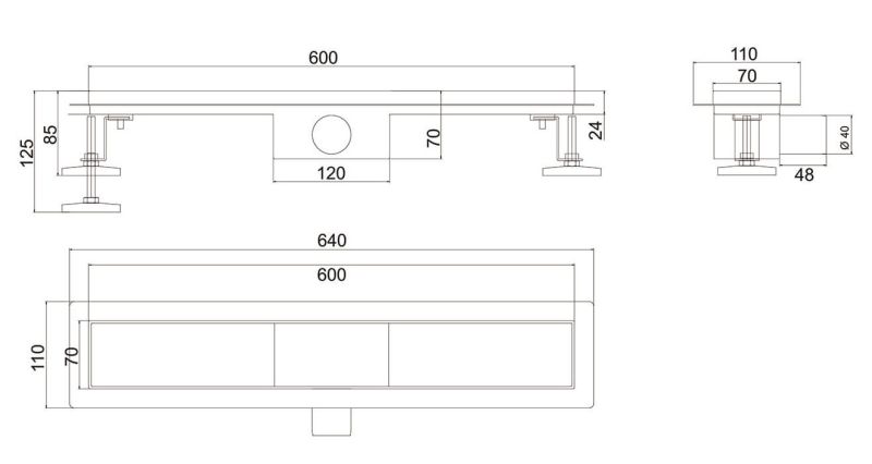 Душевой лоток РМС ТЛ-01-60х7 60см нержавеющая сталь