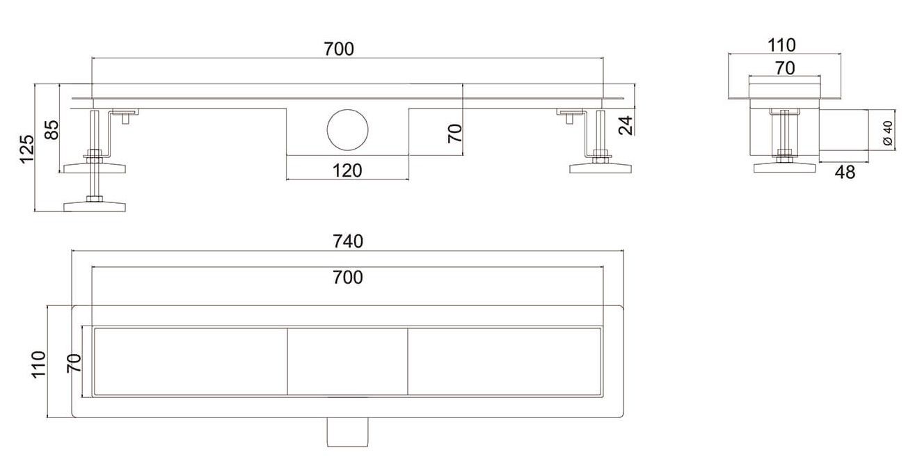 Душевой лоток РМС ТЛ-01-70х7 70см нержавеющая сталь купить