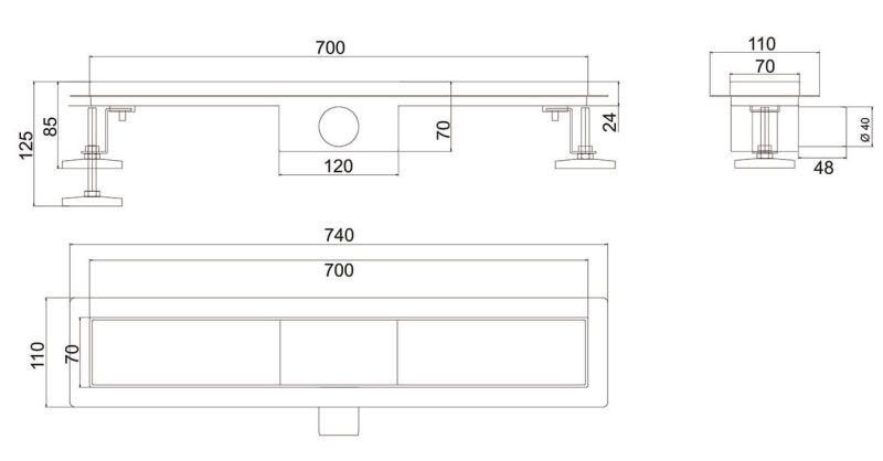 Душевой лоток РМС ТЛ-01-70х7 70см нержавеющая сталь