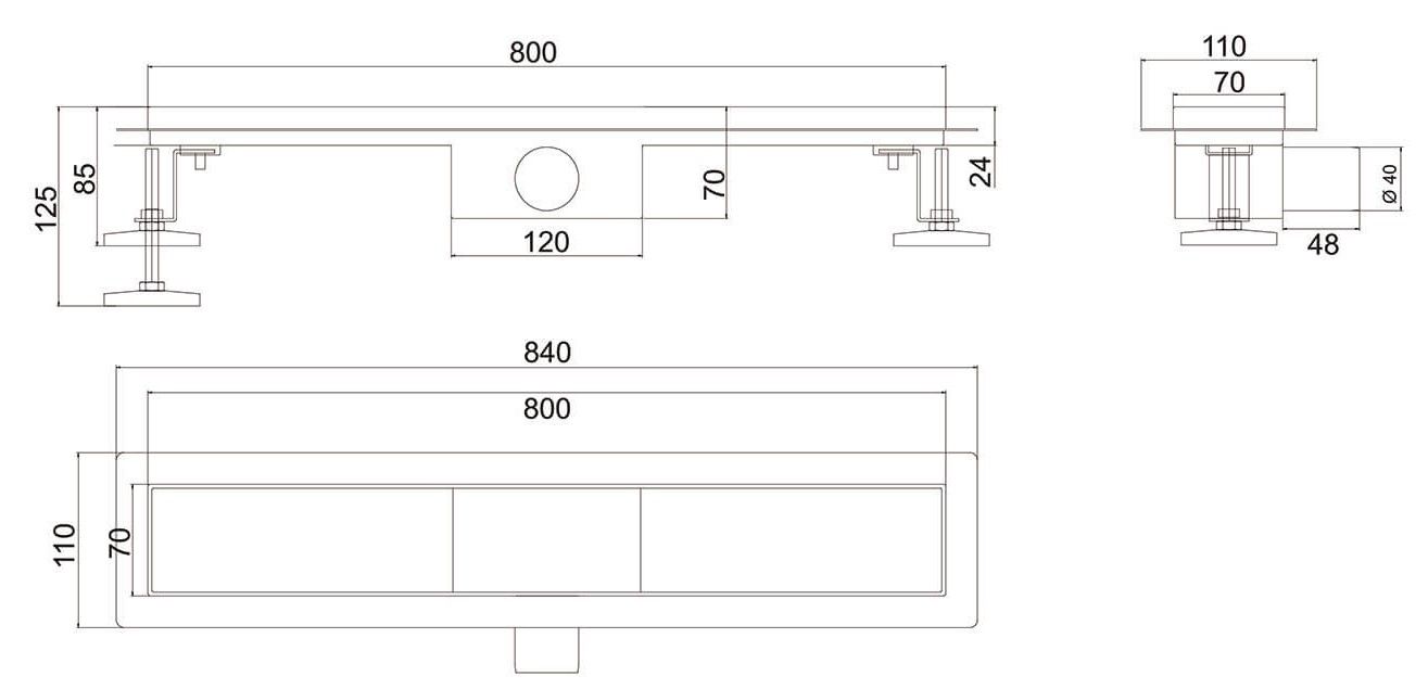 Душевой лоток РМС ТЛ-04-80х7 80см нержавеющая сталь купить