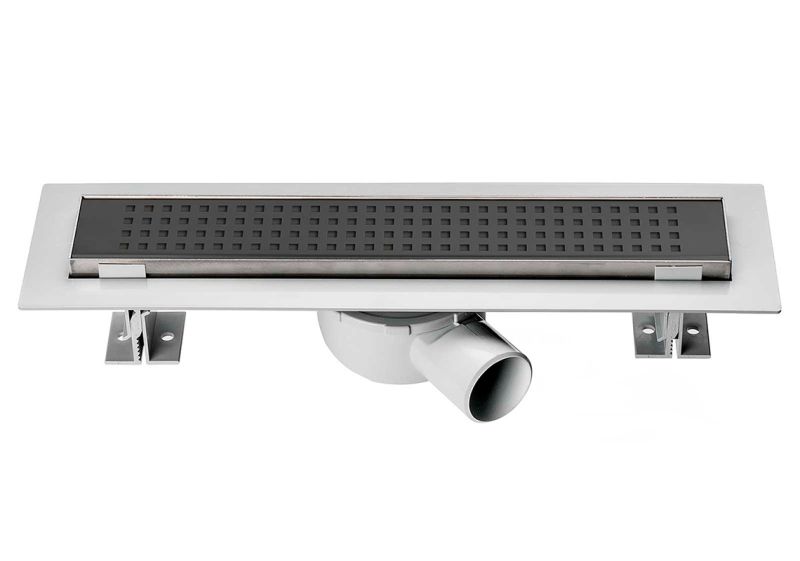 Комплектация: поворотный сифон 360 градусов из ABS-пластика, водонепроницаемые уплотнительные кольца, решетка из нержавеющей стали 1.5 мм, дренажный канал из ABS-пластика, противозапаховый затвор, водонепроницаемая мембрана, рамка из нержавеющей стали, комплект регулируемых по высоте опор, пластиковый сервисный ключ, регулировочный винт из нержавеющей стали, регулировка соединения.