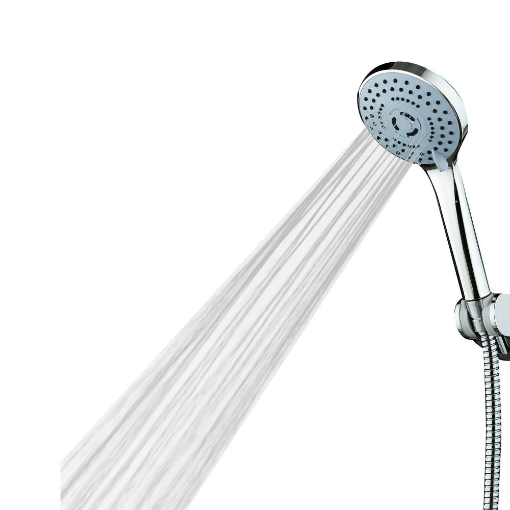 Душевой набор в цвете глянцевый хром: ручной душ d90 мм (3 режима) на гибком полутораметровом шланге (в металлической оплетке) с защитой от перекручивания. Держатель ручного душа с регулировкой угла наклона. Форсунки ручного душа с функцией легкого очищения от известкового налета.