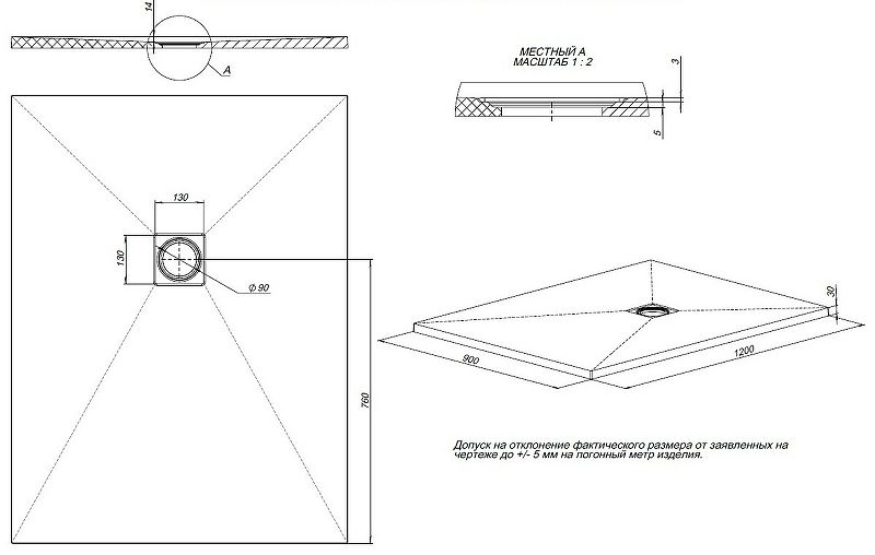 Размеры (ШхВхД): 1200х30х900 мм.