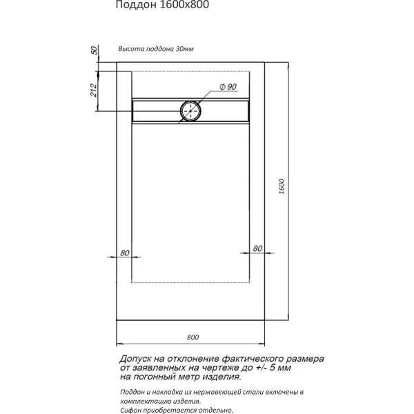 Душевой поддон Aquanet Delight 258886 160x80 см серый
