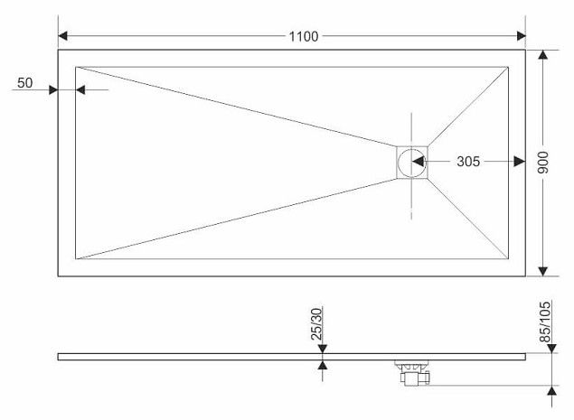 - Размеры поддона: прямоугольный 110 x 90 толщина 2,5 см