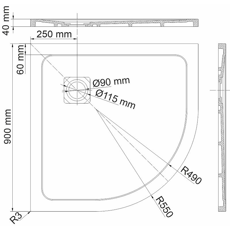 Душевой поддон из искусственного камня WasserKRAFT Dinkel 90х90 58T01 Белый глянец