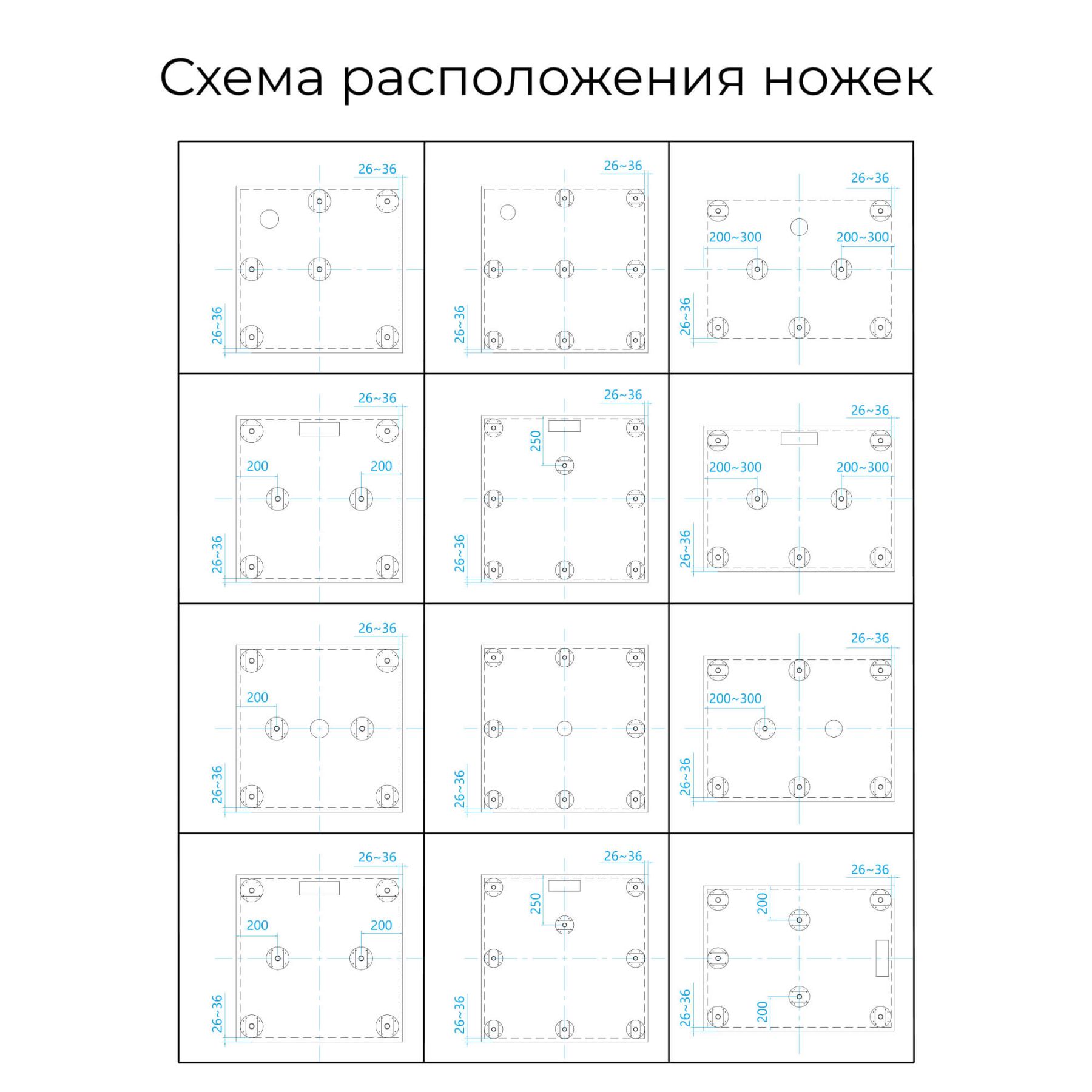 Душевые поддоны RGW ST с фактурой под сланцевый камень.Меняем представление о текстуре «искусственный камень»!В серии душевых поддонов Stone Tray появилась новинка популярной квадратной формы в роскошном белом цвете и трех форматах. При необходимости мы можем выполнить обрезку изделия по индивидуальному размеру.Визуальные акценты и форма поддона - новые, а качество прежнее: рельефная антискользящая поверхность в сочетании с низкой теплопроводностью материала создает ощущение нагретого солнцем камня под вашими ступнями и выводит обычный прием душа на новый уровень комфорта.Высокотехнологичный материал - 80% мраморной крошки плюс полиэфирные смолы - обеспечивает беспрецедентную устойчивость к механическим, химическим и другим видам повреждений, а также выдерживает долговременную весовую нагрузку до 300 кг.Добавьте сюда низкий уровень шума воды, когда вы принимаете душ для ещё большего удовольствия.Новый поддон — это самостоятельный аксессуар вашей душевой. Универсальный цвет, откликающийся на уровень освещения, и текстура “под камень” идеально сочетаются с интерьерами от смелых лофт и хайтек до романтичного прованса, а решетка из нержавеющей стали, защищающая слив, создаст безупречный аккомпанемент душевым системам, а таком же оттенке.Обратите внимание: фактические размеры с учетом заполнения швов могут меняться в пределах -8/+2 мм.По вашему желанию можем установить поддон на ножки: