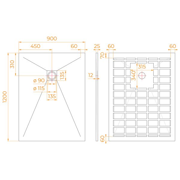 - Широкий размерный ряд: от 800x800 мм с шагом в 10 см до максимального размера 900x1200 мм, что дает возможность подобрать оптимальный поддон для вашей ванной комнаты.
