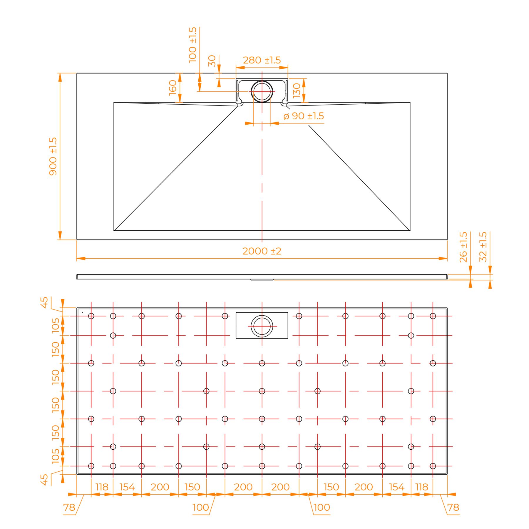 - Общая высота поддона: 26 мм.;