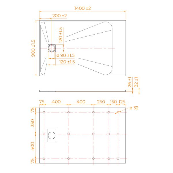 - Общая высота поддона: 26 мм.;