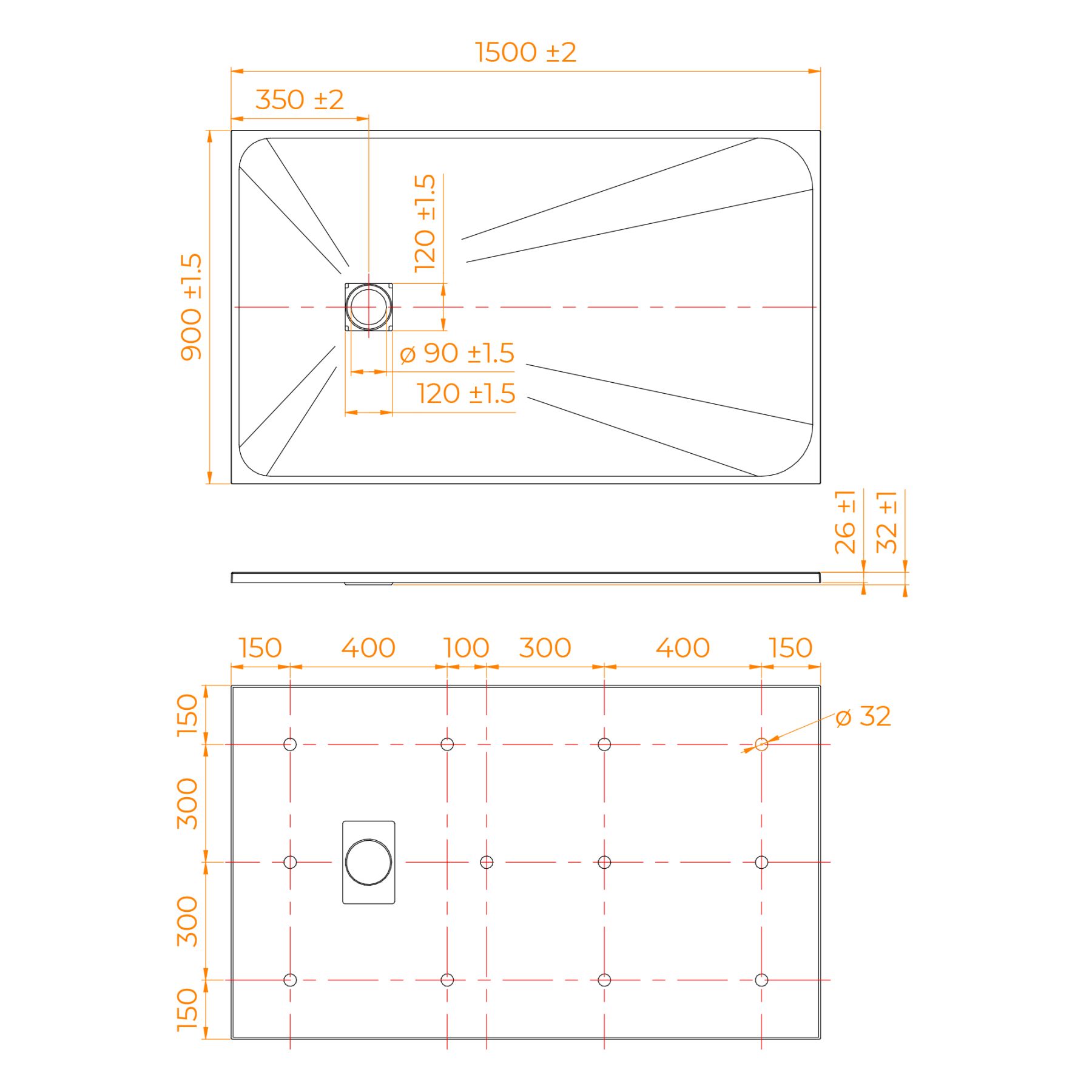 Душевой поддон RGW TSS-W 553502915-01 90x150см белый
