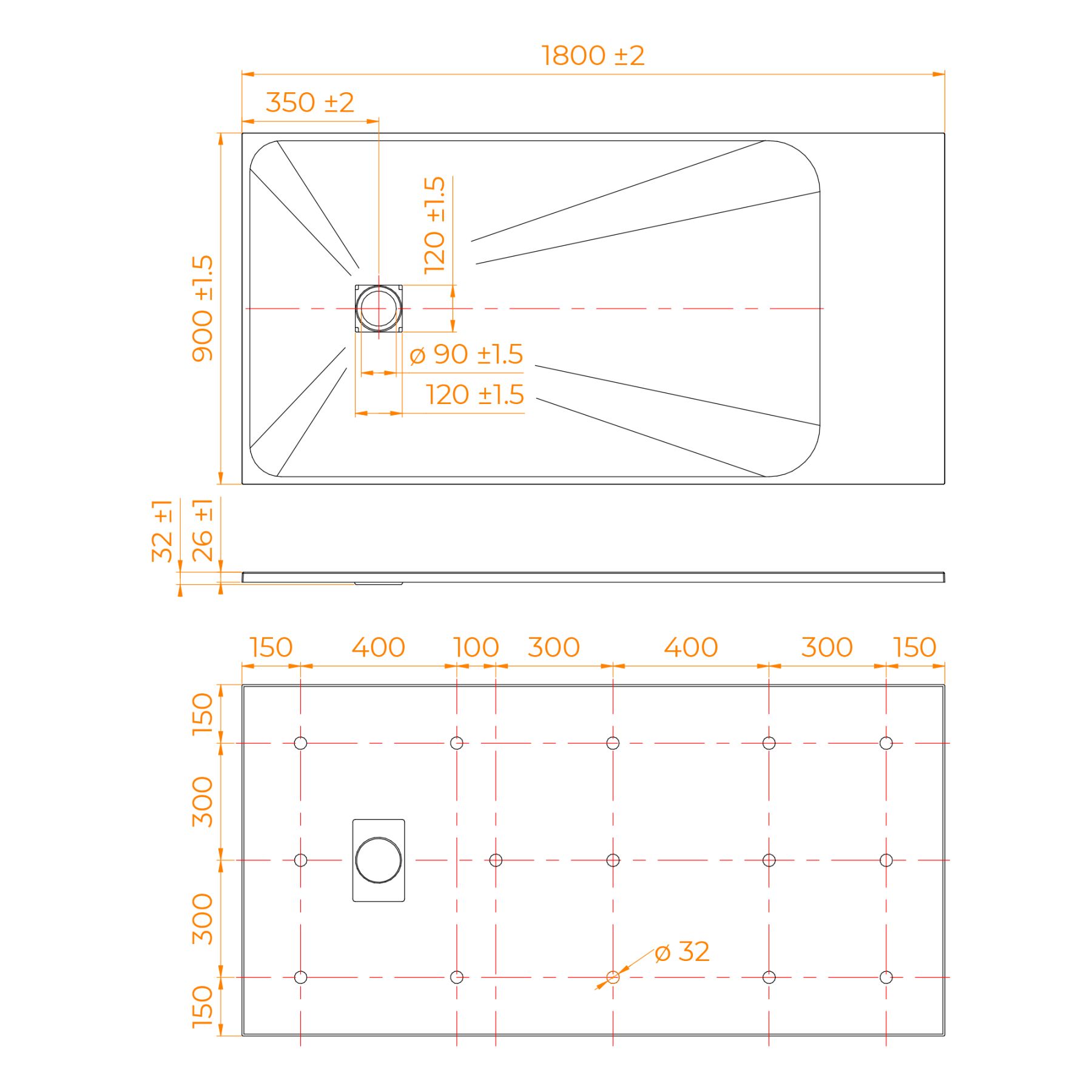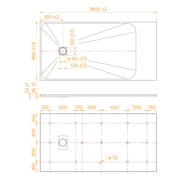 • Общая высота поддона: 26 мм.;