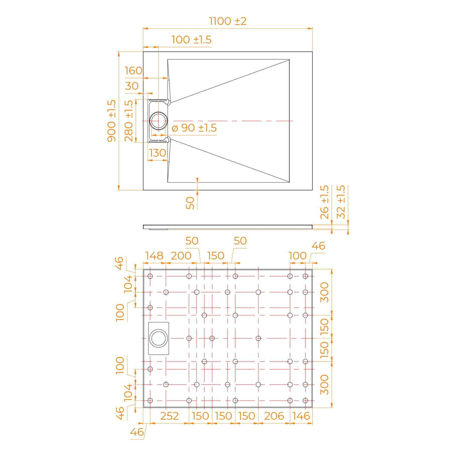 • Общая высота поддона: 26 мм.;