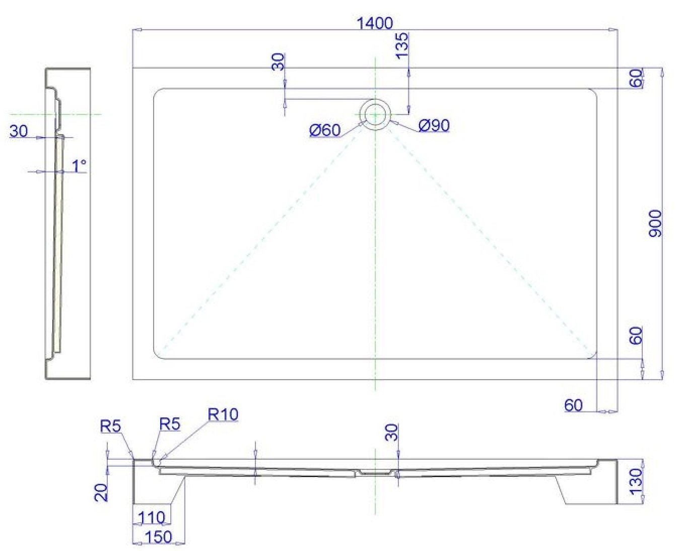 - Душевой поддон на ножках