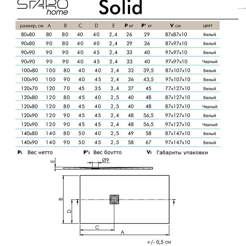 Душевой поддон Starohome Solid 100х90 WHITE MATT, 100 x 90 см, литьевой мрамор, прямоугольный, цвет белый матовыйИзготовлен из литиевого мрамора Sanydur® и представляет собой монолитный материал на 85% состоящий из мраморной крошки, минеральных пигментов и связывающего материала в виде полиэфирной смолы. Сверху материал покрывается гелевым слоем Gel Coat.Покрытие Gel Coat - это прочный прозрачный, абсолютно непористый материал, защищающий материал поддона от загрязнений, перепада температур и УФ-излучения. Душевые поддоны Solid производятся на современном европейском оборудовании для европейского рынка. Контроль качества осуществляется на всех этапах производства.