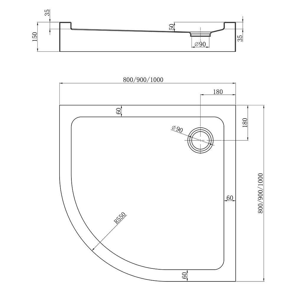 Душевой поддон Veconi Tezeo Acrylic TZ-51B, 800x800x150, акрил, черный купить