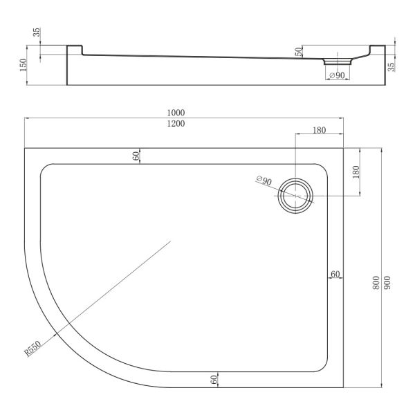 Душевой поддон Veconi Tezeo Acrylic TZ-55RB, 1000x900x150, акрил, черный