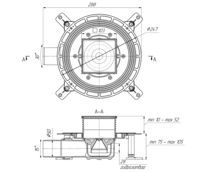 Душевой трап Bronze de Luxe 21975-5602, бронза купить
