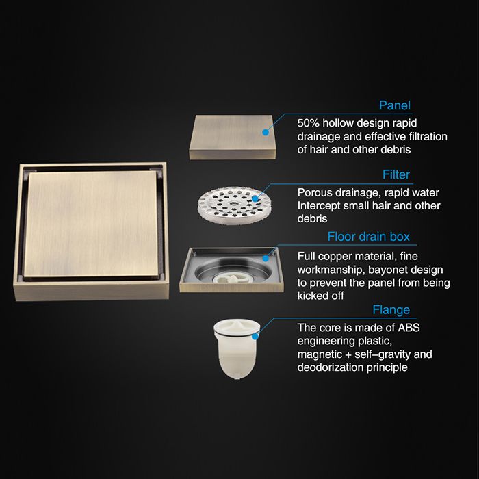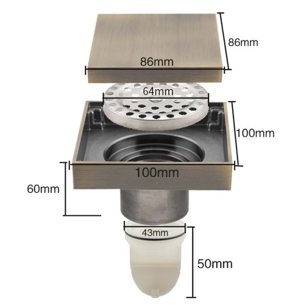 Трап для душа вертикальный Gappo G81005-4, размер 10 * 10 см, цвет бронза, изготовлен трап из нержавеющей стали.