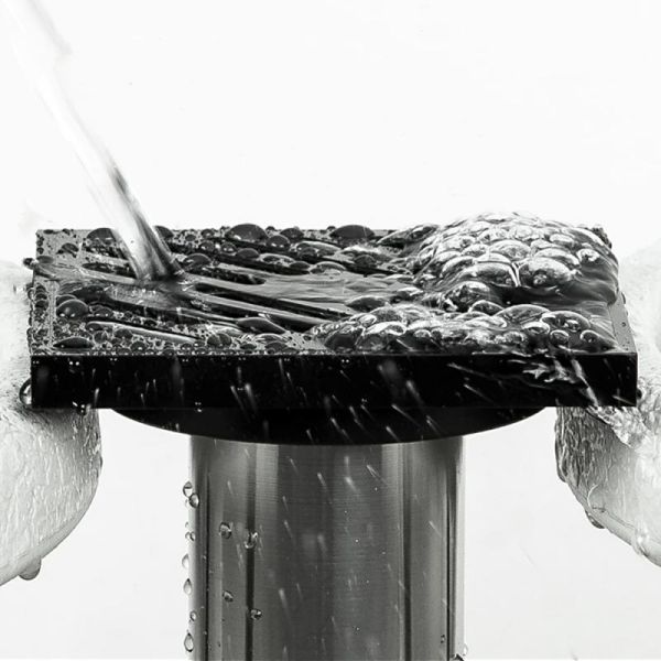Квадратный душевой трап с вертикальным выпуском Gappo G81050-6, размер 10 * 10 см, цвет черный, изготовлен трап из нержавеющей стали.