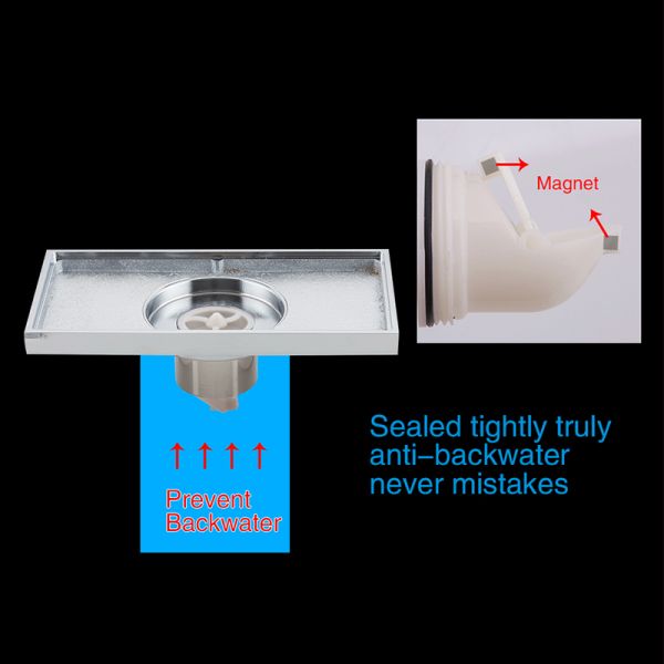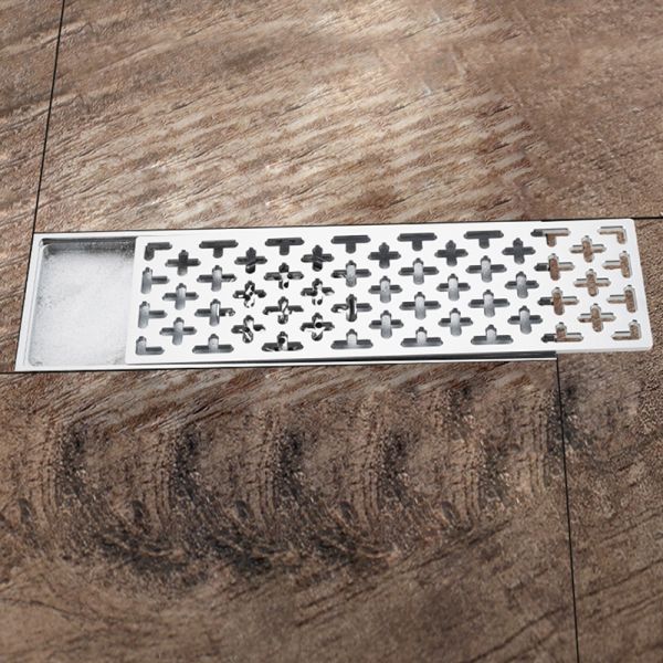 Прямоугольный трап для душа с вертикальным выпуском Gappo G83050, размер 10 * 30 см, цвет хром, изготовлен трап из нержавеющей стали.
