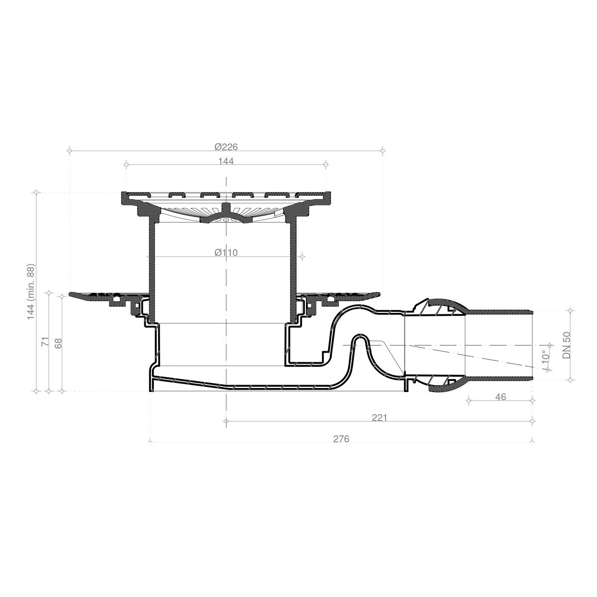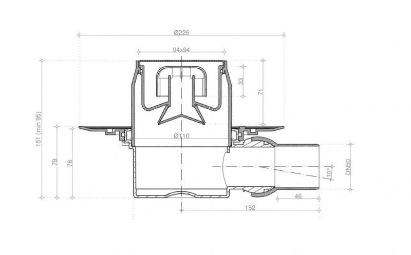 - Решетка: металл с перфорацией "Хром глянец". Базы: 1 - с 1 выходом, 4- S-образный сифон. - Материалы: решетка - нержавеющая сталь AISI 304 SS, корпус, сифон - PP. - Размеры решетки 100х100 мм и 150х150 мм, - пропускная способность 48 л/мин, D=50 мм, - поворот базы 360°, - минимальная высота монтажа - 78 мм (для базы 2,3), 69 мм (для базы VERTICAL), - гидрозатвор. - 10х10 - комбинированный затвор - 15х15 - гидрозатвор Mask - с рамкой