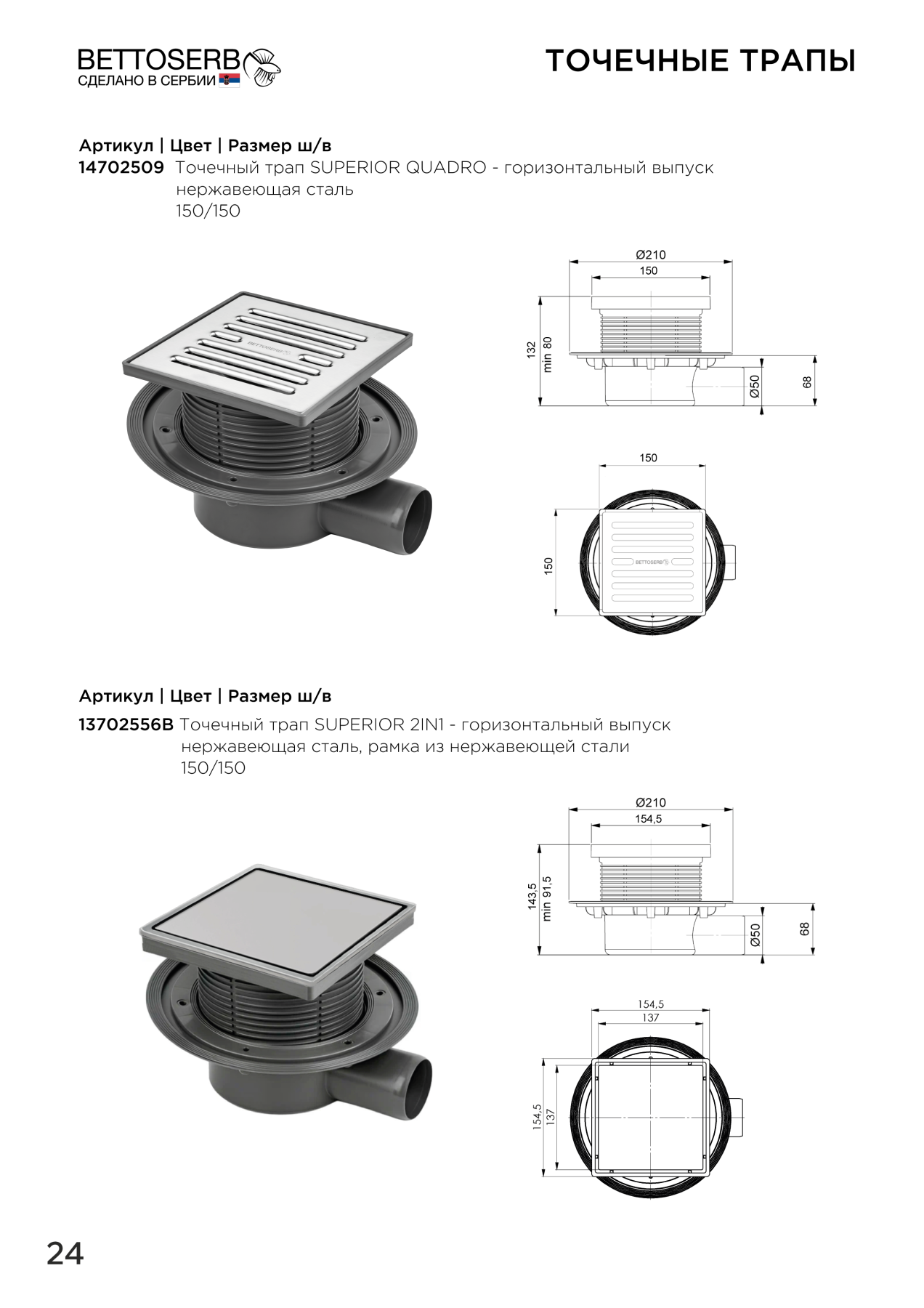 Душевой трап Bettoserb 15x15 SUPERIOR 2IN1 MULTISIPHON с комбинированным затвором – эффек... Подробнее
