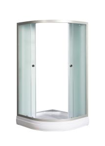 Типы и размеры:без поддона 90*90*176с поддоном 90*90*191Матовое стекло, профиль матовый хромДушевое ограждение для ванной комнаты полукруглое с боковым профилем и роликами.
