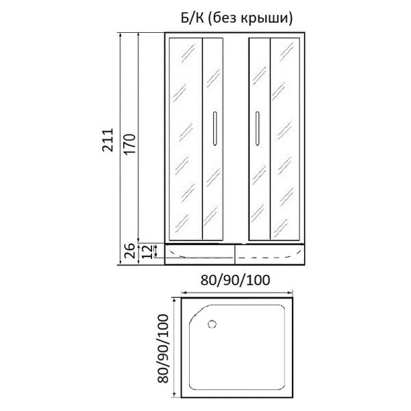 Размеры и комплектации:без поддона 80*80*185с поддоном 80*80*211Матовое стеклоДушевое ограждение для ванной комнаты квадратное с боковым регулировочным профилем и саморегулирующимися металическами, хромированными, двойными роликами.