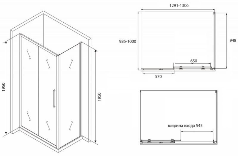 Душевой уголок ABBER Schwarzer Diamant 130x100см AG30130BH-S100B