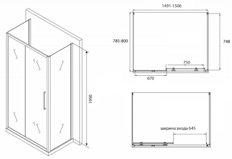 Душевой уголок ABBER Schwarzer Diamant 150x80см AG30150BH-S80B-S80B