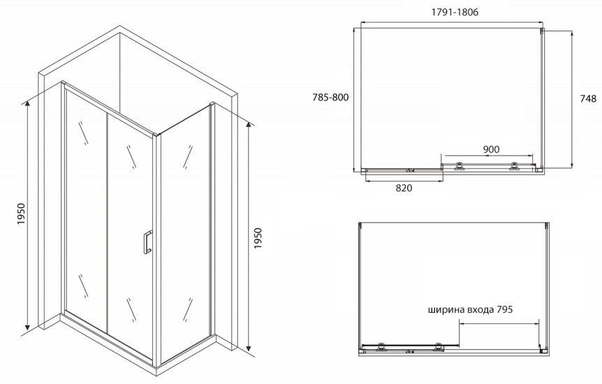 Душевой уголок ABBER Schwarzer Diamant 180x80см AG30180B-S80B купить