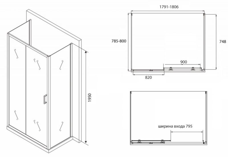 Душевой уголок ABBER Schwarzer Diamant 180x80см AG30180B-S80B-S80B