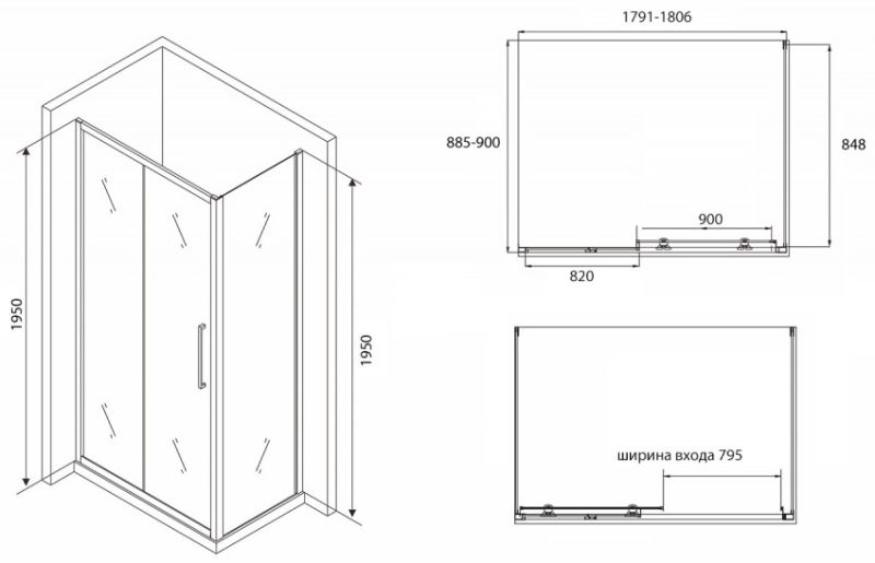 Душевой уголок ABBER Schwarzer Diamant 180x90см AG30180BH-S90B