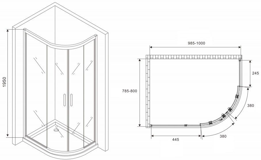 Душевой уголок ABBER Schwarzer Diamant AG01180 100x80см хром купить
