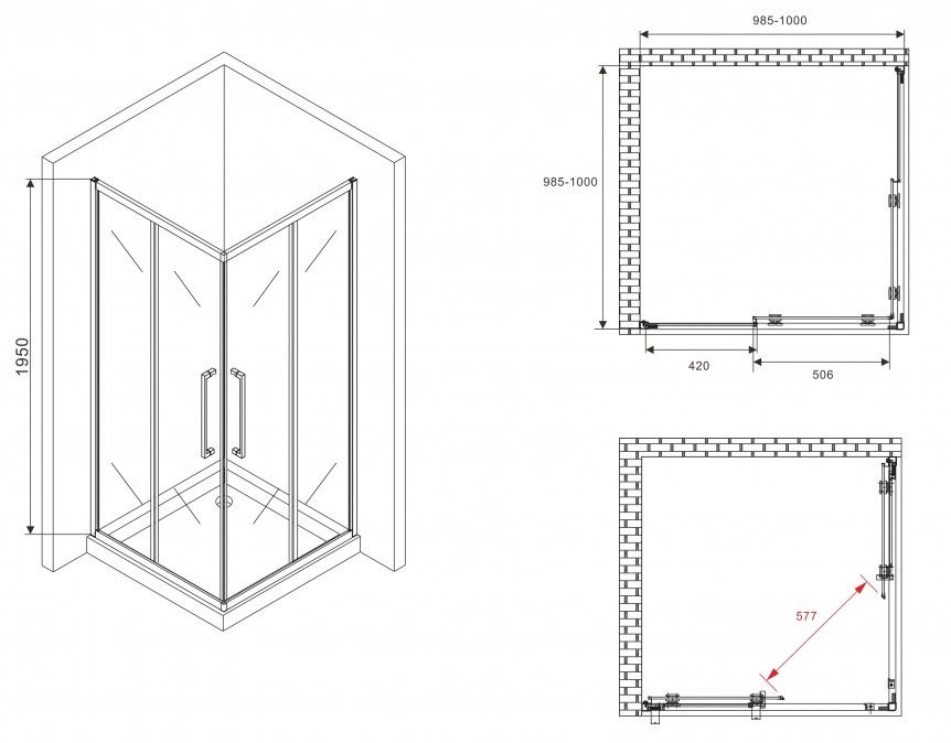 Душевой уголок ABBER Schwarzer Diamant AG02100BDTH 100x100см чёрный