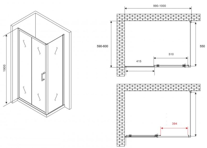 Душевой уголок ABBER Schwarzer Diamant AG301005-S605 100x60см хром