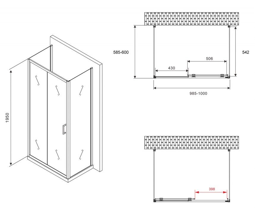 Душевой уголок ABBER Schwarzer Diamant AG30100B-S60B-S60B 100x60см чёрный