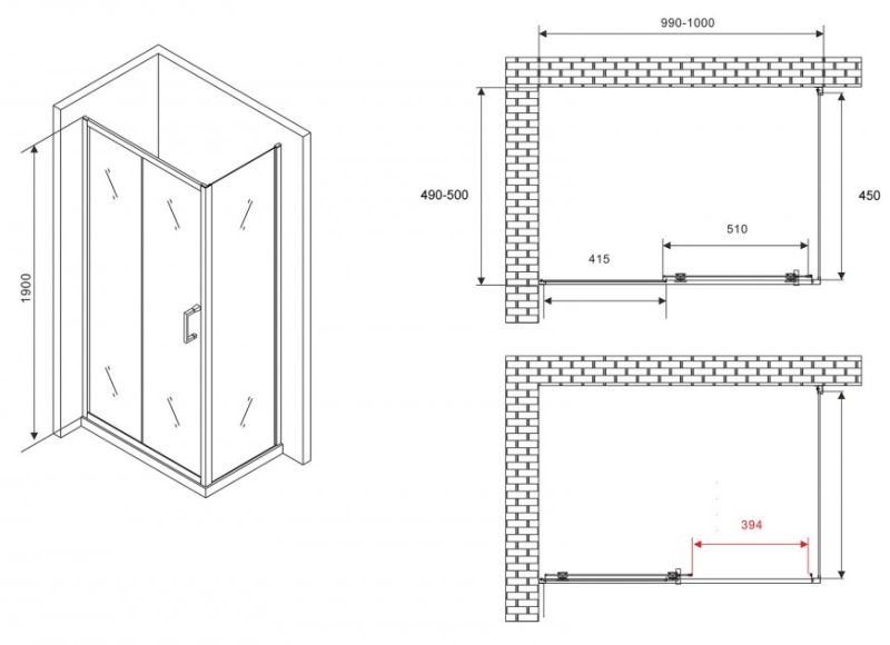 Душевой уголок ABBER Schwarzer Diamant AG30100B5-S50B5 100x50см чёрный