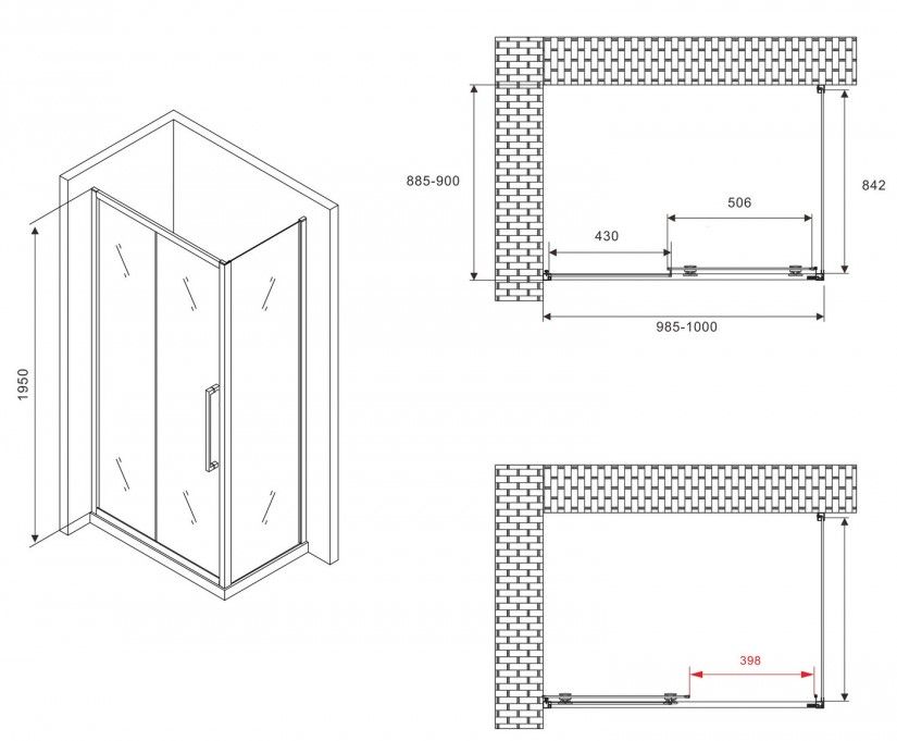 Душевой уголок ABBER Schwarzer Diamant AG30100BMH-S90BM 100x90см чёрный