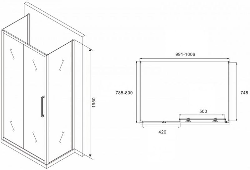 Душевой уголок ABBER Schwarzer Diamant AG30100H-S80-S80 100x80см хром