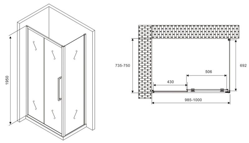 Душевой уголок ABBER Schwarzer Diamant AG30100MH-S75M 100x75см хром